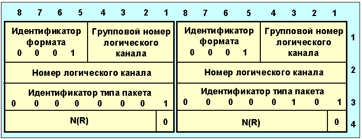 Рис 4.3.2.10. Формат пакетов готовность к приему и неготовность к приему при нумерации по модулю 8.