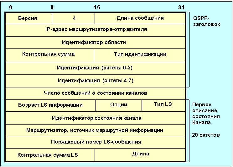 Любое сообщение ospf начинается с 24-октетного заголовка: