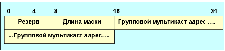 Поле длина адреса характеризует длину кода адреса в байтах. Поле контрольная сумма вычисляется методом суммирования всего pim-сообщения по модулю 1, это поле имеет длину 16 бит. Формат закодированного группового адреса показан на рис. 4.4.9.5.4.