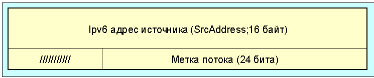 SrcAddress. Это поле характеризует IP-адрес источника для ЭВМ отправителя. Его значение не должно быть равно нулю. SrcPort. UDP/TCP номер порта отправителя, или нуль, указывающий на отсутствие порта. Метка потока. 24-битовое поле метки потока, определенной в IPv6. Этот код может использоваться классификатором пакетов для эффективной идентификации кадров, принадлежащих определенному потоку данных (отправитель-> место назначения). Класс SENDER_TEMPLATE = 11.