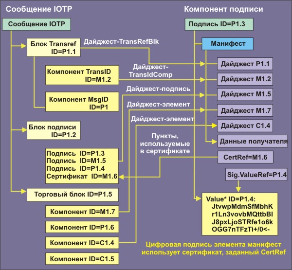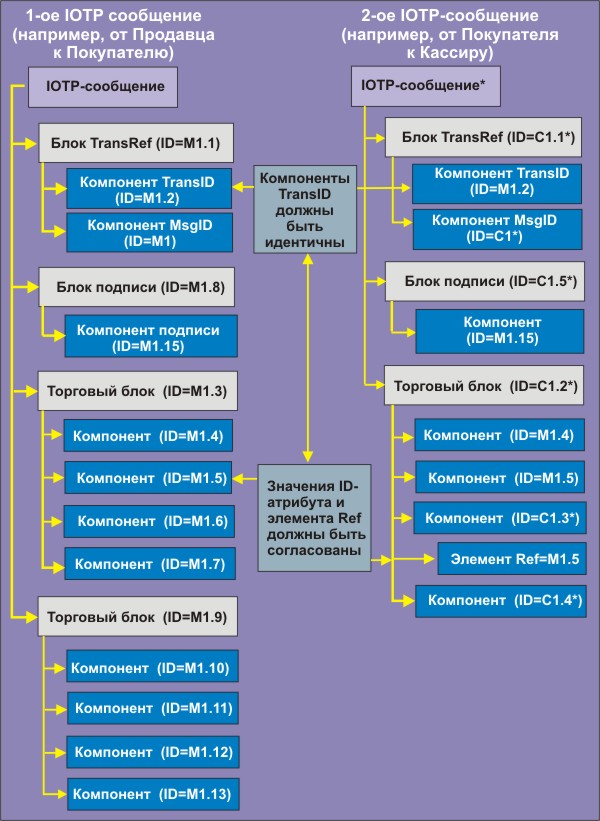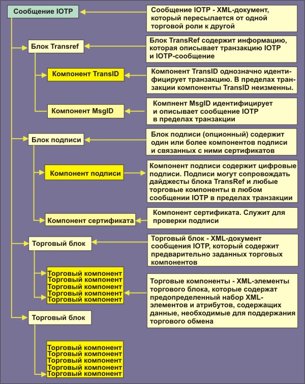 содержаться в IOTP-сообщениях, которые пересылаются в форме XML-документов от одной торговой роли к другой.