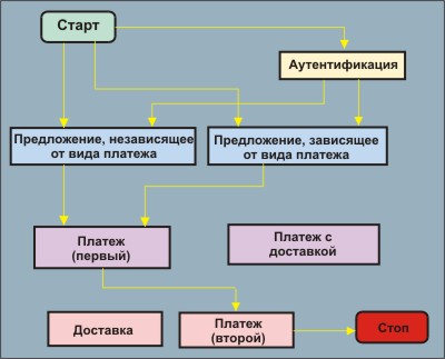 - В простейшем случае одна организация (напр., продавец) может оформлять покупку, принимать платеж, доставлять товар и