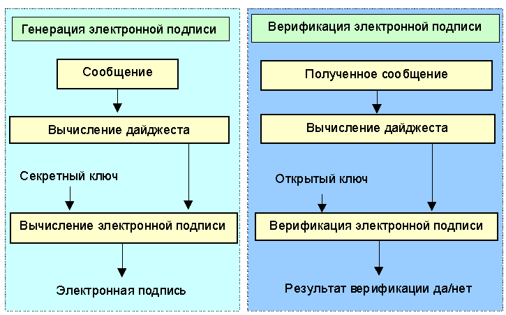 Решение практически всех этих проблем может быть реализовано с помощью электронной подписи, базирующейся на алгоритме RSA. Рассмотрим принципы, на которых базируется электронная подпись.