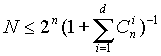 Описанная схема легко переносится на любое число n и М. Число возможных кодовых комбинаций М помехоустойчивого кода делится на n классов, где N - число разрешенных кодов. Разделение на классы осуществляется так, чтобы в каждый класс вошел один разрешенный код и ближайшие к нему (по расстоянию Хэмминга) запрещенные коды. В процессе приема данных определяется, к какому классу принадлежит пришедший код. Если код принят с ошибкой, он заменяется ближайшим разрешенным кодом. При этом предполагается, что кратность ошибки не более qm. Можно доказать, что для исправления ошибок с кратностью не более qmm (как правило, оно выбирается равным D = 2qm +1). В теории кодирования существуют следующие оценки максимального числа N n-разрядных кодов с расстоянием D.