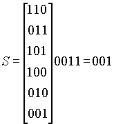 Предположим, что верхняя строка таблицы содержит истинные значения переданных кодов. Из таблицы 2.8.3 видно, что, если ошибки случаются в позициях, соответствующих битам кодов из левой колонки, можно определить истинное значение полученного кода. Для этого достаточно полученный код сложить с кодом в левой колонке посредством операции XOR. Синдром равен произведению левой колонки (CL "coset leader") стандартного массива на транспонированную матрицу контроля четности HT.