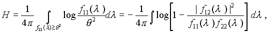 (в последнем выражении интегрирование ведется в пределах -p ё l ё p для дискретного времени t и в пределах -╔ <l <╔ для непрерывного t), где fz z (l) - спектральная плотность гауссова процесса z (t), функция f(l) имеет вид