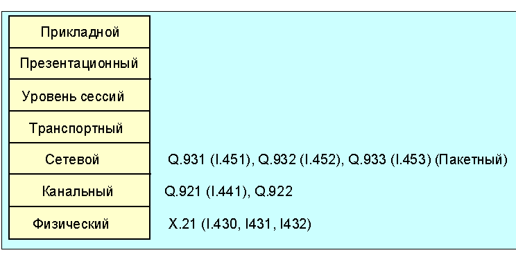 Международная организация по стандартизации (ISO) определила 7-уровневую эталонную сетевую модель для открытых систем (OSI), (Интернет использует 4-х уровневое подмножество). Ниже на рис. 4.3.1.1 показана схема этих уровней, справа записаны коды документов международного Телекоммуникационного союза (ITU), регламентирующих протоколы соответствующих уровней.