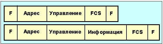Рис. 4.3.1.2 Два вида кадров процедур HDLC Флаг f = 01111110 задает границы кадра, SCS - контрольная сумма. Поля информация может иметь переменную длину, кратную восьми бит. Для HDLC определены три класса кадров: информационные (I), управляющие (S -supervisory) и ненумерованные (U - unnumbered). (Эти форматы соответствуют канальному уровню протокола x.25). Формат поля управление I-кадра показан на рис. 4.3.1.3.