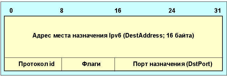 Объект IPv6 FILTER_SPEC: Класс = 10, C-тип = 2 Объект имеет ту же структуру, что и предыдущий, только для каждого адреса выделяется 16 байт.