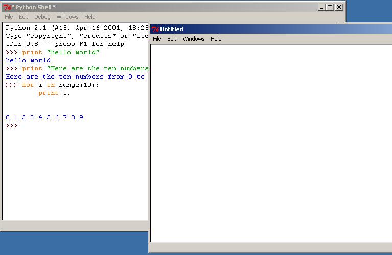It might be nice to have a "visual" guide to reduce any initial anxieties. That's what this page is for. The plan is to go through a small session with IDLE: the Integrated Development Environment. IDLE is designed to provide a simple way of exploring the language. During this session, I'll make a few fumbling mistakes, just to show what to expect when things don't go exactly hunky-dory.