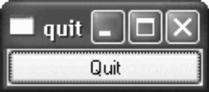 Следующий пример показывает -- как организовать реакцию приложения на действия пользователя. Это приложение содержит кнопку, при нажатии на которую программа закрывается. Исходный текст очень похож на предыдущий пример, за исключением того, что теперь, в качестве главного виджета, вместо QLabel используется QPushButton, и добавлен код, который обслуживает факт ее нажатия.