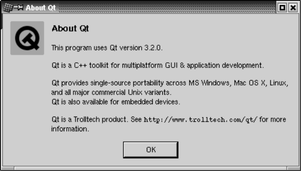 Qt -- это библиотека классов C++ и набор инструментального программного обеспечения, предназначенных для построения многоплатформенных приложений с графическим интерфейсом и исповедующих принцип "написав однажды -- компилируй в любом месте". Qt представляет собой единую платформу для приложений, которые могут работать под управлением Windows 95/98/Me/2000/XP, Mac OS X, Linux, Solaris, HP-UX и других версий Unix.