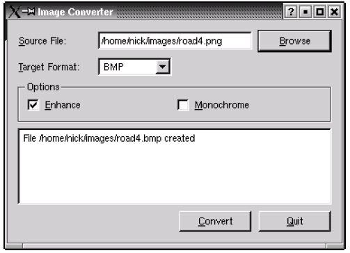 Теперь самое время проверить работу нашего приложения. Но прежде всего -- необходимо, чтобы у вас была установлена Qt 3.2 (или более поздняя версия), а переменная окружения PATH содержала корректный путь к каталогу bin. (В Windows настройка переменной PATH выполняется автоматически, в процессе установки библиотеки Qt)