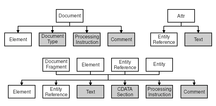 Рисунок 14.3. Взаимоотношения между типами узлов в DOM.