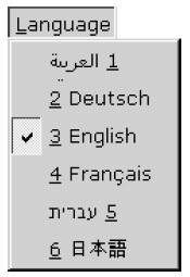 Функция createMenus(), которая упоминалась выше, вызывает функцию createLanguageMenu(), чтобы заполнить меню Language списком поддерживаемых языков: