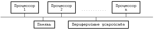 В классической постановке для системы UNIX предполагается использование однопроцессорной архитектуры, состоящей из одного ЦП, памяти и периферийных устройств. Многопроцессорная архитектура, напротив, включает в себя два и более ЦП, совместно использующих общую память и периферийные устройства (Рисунок 12.1), располагая большими возможностями в увеличении производительности системы, связанными с одновременным исполнением процессов на разных ЦП. Каждый ЦП функционирует независимо от других, но все они работают с одним и тем же ядром операционной системы. Поведение процессов в такой системе ничем не отличается от поведения в однопроцессорной системе - с сохранением семантики обращения к каждой системной функции - но при этом они могут открыто перемещаться с одного процессора на другой. Хотя, к сожалению, это не приводит к снижению затрат процессорного времени, связанного с выполнением процесса. Отдельные многопроцессорные системы называются системами с присоединенными процессорами, поскольку в них периферийные устройства доступны не для всех процессоров. За исключением особо оговоренных случаев, в настоящей главе не проводится никаких различий между системами с присоединенными процессорами и остальными классами многопроцессорных систем.
