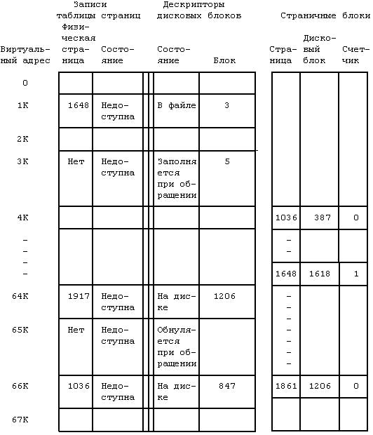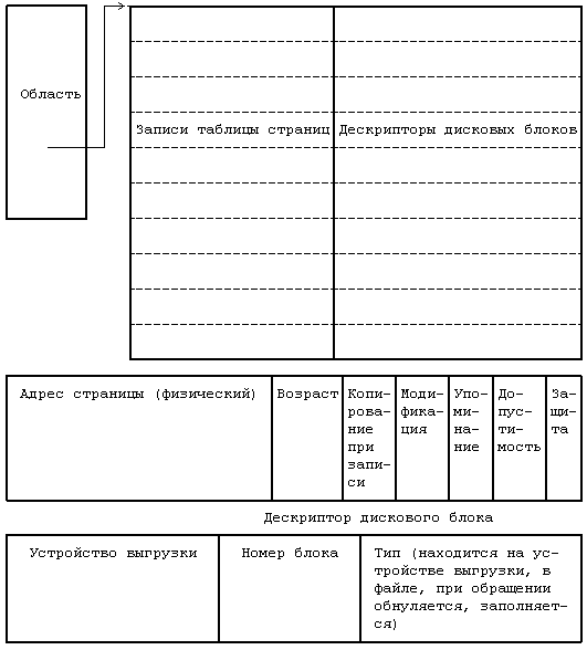 Рисунок 9.13. Записи таблицы страниц и дескрипторы дисковых блоков
