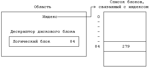 Для того, чтобы считывать страницы непосредственно из исполняемого файла, ядро во время исполнения функции exec составляет список номеров дисковых блоков файла и присоединяет этот список к индексу файла. Работая с таблицами страниц такого файла, ядро находит дескриптор дискового блока, содержащего страницу, и запоминает номер блока внутри файла; этот номер позже используется при загрузке страницы из файла. На Рисунке 9.17 показан пример, в котором страница имеет адрес расположения в логическом блоке с номером 84 от начала файла. В области имеется указатель на индекс, в котором содержится номер соответствующего физического блока на диске (279).