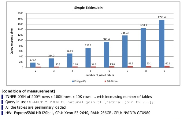 В рамках проекта PG-Storm (https://github.com/pg-strom) при участии компании NEC развивается дополнение к СУБД PostgreSQL, позволяющее вынести на плечи GPU выполнение некоторых операций обработки SQL-запроса. В частности, за счёт привлечения GPU могут быть ускорены такие операции как сравнительный перебор элементов таблиц, агрегирование записей и слияние хэшей. | ||
