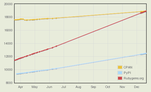 Интересно былоб посмотреть на подобную статистику для всех популярных языков - от C библиотек до какого-ть лиспа.