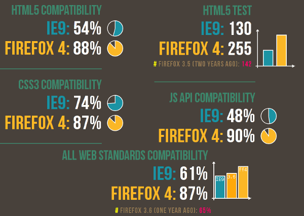 Совершенно неубедительные цифры. Из графиков следует, что IE9 в общем набирает 61%, а Firefox 3.6 65%, что незначительно выше (по сравнению с FF 4 с его 87%). Я бы не назвал Firefox 3.6 несовременным браузером. Тем более надо учитывать, что 4-ая версия еще не вышла, да и переход на нее может занять немало времени (совместимость плагинов).