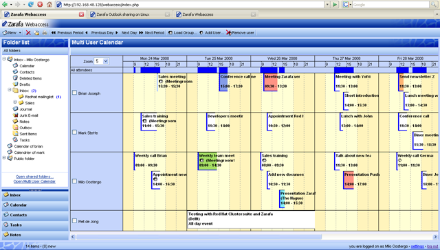 Postfix + Dovecot + MySQL + SOGO -> Адресные книги, почта, календари (+шаринг этого всего + к этому легко Thunderbird подрубается (пробовал - ок) + Outlook подрубается через Funambol (не получилось) и еще через какую-то примочку (влом было, ибо не надо было все фишки)