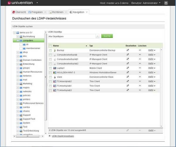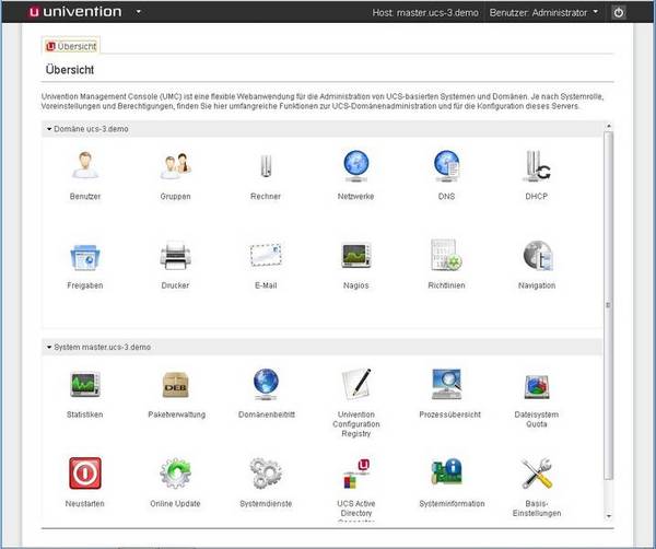 - Полная переработка управляющего web-интерфейса, в котором теперь активно используется Ajax. В новом интерфейсе объединены функции ранее разрозненных интерфейсов Univention Management Console и Univention Directory Manager;