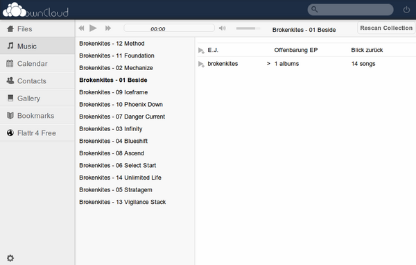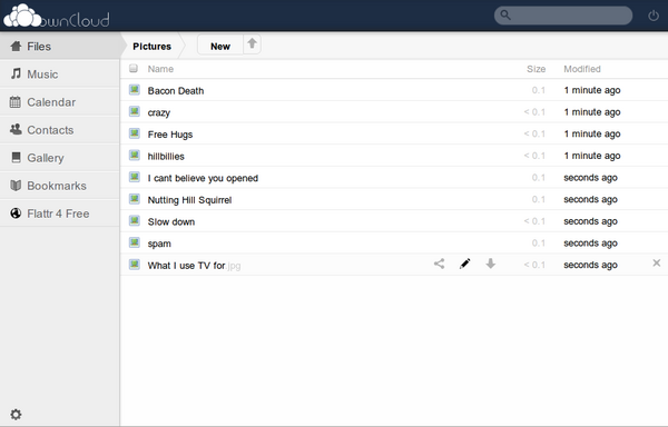 - В web-интерфейс встроены средства для работы с синхронизированной адресной книгой, календарём-планировщиком, коллекцией фотографий, архивом музыкальных произведений. Возможность работы с синхронизированными в ownCloud адресной книгой и календарём-планировщиком из программ, поддерживающих протоколы CardDAV и CalDAV, например, Kontact, Thunderbird и Evolution;