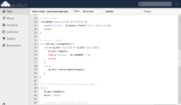 - В web-интерфейс встроен текстовый редактор для редактирования размещённых во внешнем хранилище файлов. Редактор основан на коде проекта ACE JavaScript Editor и поддерживает подсветку синтаксиса для 35 языков программирования. Также поддерживаются горячие клавиши, drag&drop-интерфейс для копирования текста, автоматическое выравнивание и формирование отступов для кода и проверка синтаксиса (для JavaScript, Coffee и CSS). В настоящее время поддерживается только редактирование текстовых файлов, но в будущих выпусках планируется обеспечить поддержку таких форматов, как DOC и ODT;