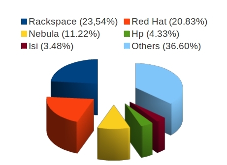 Среди принимающих участие в развитии OpenStack компаний присутствуют такие лидеры индустрии, как Citrix, Cisco, Dell, Cloud.com, HP, Red Hat, VMware, Puppet Lab, AMD, Intel, rPath, Vyatta, EnterpriseDB, NTT, NEC, NetApp, AT&T, Canonical, IBM и SUSE. Продукты для развёртывания облачных инфраструктур на базе OpenStack развиваются такими компаниями, как Rackspace, Red Hat, SUSE, Canonical, Dell и HP. Готовые пакеты c OpenStack "Folsom" подготовлены для Fedora 17/18, EPEL 6, Ubuntu 12.04/12.10.