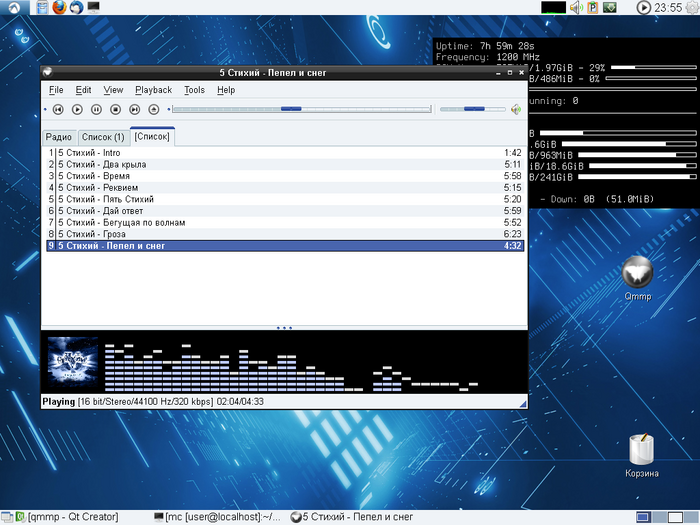 Да зря вы так, нормальный плеер. А у упомянутых приступы неадеквата. Одних прошибло тулкиты менять как перчатки, вторые прут 100500 самопальных "улучшенных" библиотек вместо реюза системных и вталкивания изменений в апстрим. При таком раскладе я бы не стал катить бочки на qmmp...
