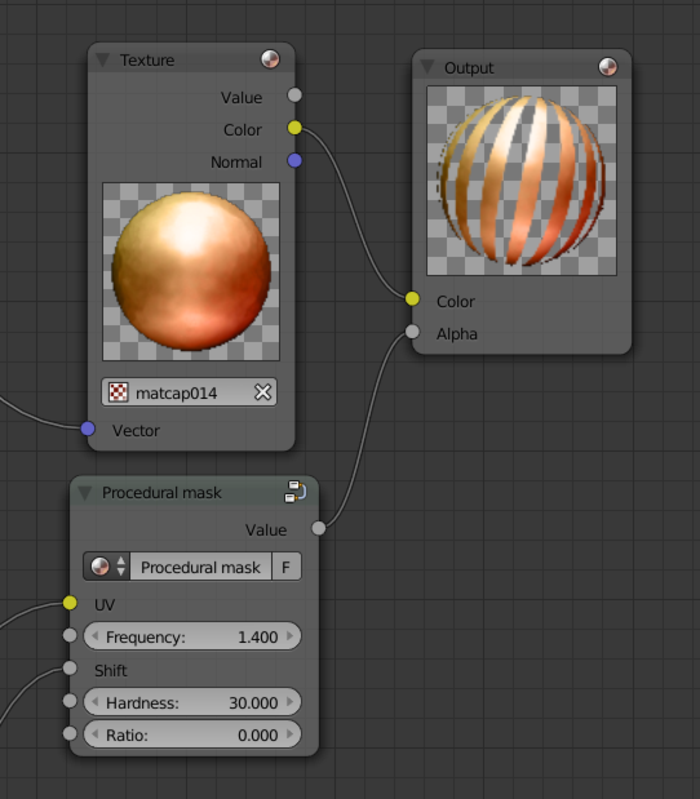 - Функциональность нодового редактора материалов существенно расширена для случая использования типа прозрачности Alpha Clip (отсечение по значению альфа). Полученные с помощью математических операций процедурные маски могут подаваться на вход Alpha для вырезания участков поверхности любой формы. Это позволяет осуществлять процедурное управление геометрией, например анимацию или плавное растворение объектов с расстоянием.