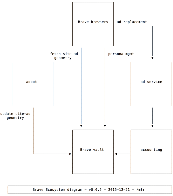 По мнению Брендена Айка подобный подход даёт пользователю возможность полностью контролировать все браузерные данные, а владельцам сайтов сохранить возможность размещения контекстной рекламы. Контролирующая разработку Brave компания будет выступать в качестве посредника и получать определённый процент от рекламного дохода. Модель распределения средств в настоящий момент подразумевает передачу 55% дохода владельцу сайта, 15% возьмёт себе Brave, 15% уйдёт на оплату привлекающих рекламодателей партнёров и 10-15% получит непосредственно пользователь браузера. Таким образом, предложенная в Brave схема выгодна не только владельцам сайтов, но и пользователям браузера, которые будут получать отчисления за просмотр рекламы.