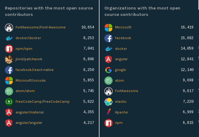 Они забыли дать разнарядку индусне о том что с каждого не менее 10 коммитов на гитхаб для подтягивания статистики. Так что теперь главный опенсорсник это майкрософт, кто-то разве сомневался?