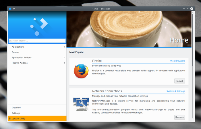 На скриншоте указан пример Firefox в этом KDE-магазине. Но зачем устанавливать в систему такую не-KDE-шную программу, как Firefox, если она ставится в систему независимо от KDE так: