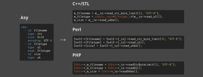 Что самое смешное - там сейчас ни одного из языков описания бинарных форматов не затронуто. Речь про DFDL, BinPAC, PacketTypes, DataScript, PADS, PEG и т.п.