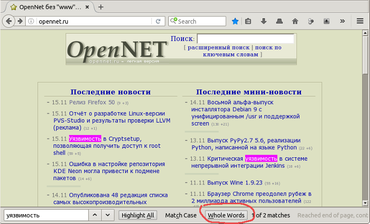 > В системе поиска на странице добавлен режим поиска с совпадением только слов целиком