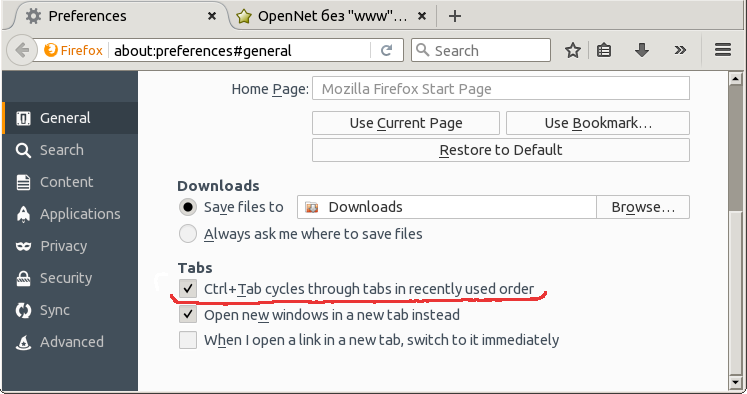 > Добавлена настройка, позволяющая использовать клавиатурную комбинацию Ctrl+Tab для цикличного обхода вкладок в порядке обращения к ним