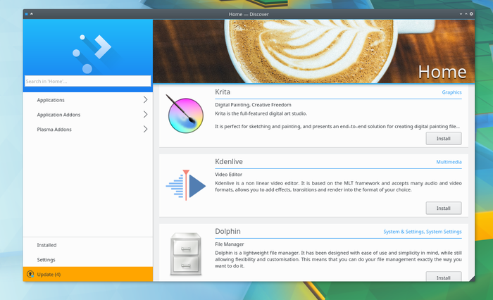 К сожалению Discover на втором скриншоте штука ещё более неюзабельная чем Muon, который она сменила. Так что чем больше программ на этом фреймворке, тем хуже всё :-(