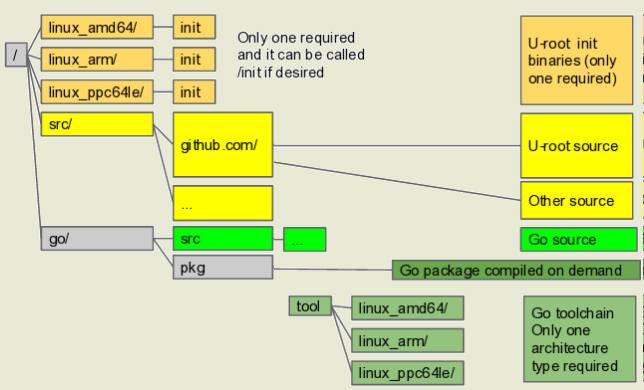 >> ... образ initramfs c системой инициализации и инструментарием u-root, написанными на языке Go.