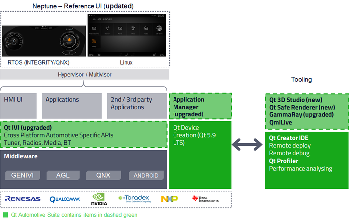 >Например, Qt Safe Renderer может применяться для отрисовки приборной панели и выполняться отдельно под управлением RTOS (для окружения с некритичными IVI-компонентами используется Linux);