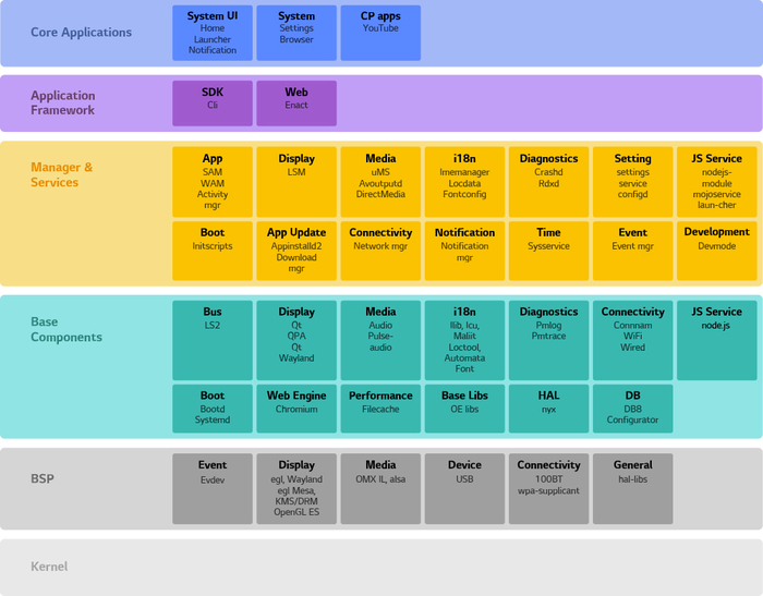 > Существенно обновлены версии сторонних компонентов, задействованных в webOS, например, Qt обновлён до выпуска 5.6, вместо WebKit теперь поставляется движок Blink из Chromium 53.