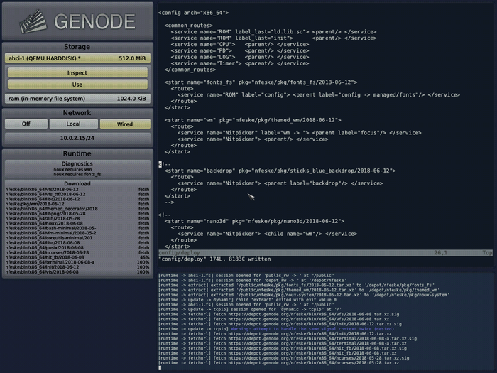 Т.е. чаще Genode работает как ядро 2-го уровня поверх линукса например, но в особых случаях может запускаться как обычное (native a.k.a bare-hw) ядро на одной из ARM-плат (pandaboard).