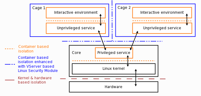 А когда такая же или подобная инициатива с секурным дистром дойдёт до того, что в каждом отдельном окружении нужен не только свой отдельный набор либ и программ, но и свои отдельные инстансы модулей и драйверов ядра (но не целое отдельное ядро в каком-нить KVM) - то все бодро выскажут своё одобрямс, не заметив, что одобрили микроядро...