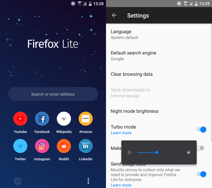 >Ключевым отличием Firefox Lite от Firefox Focus является использование встроенного в Android движка WebView вместо Gecko, что позволяет уменьшить размер APK-пакета с 38 до 2.5 МБ