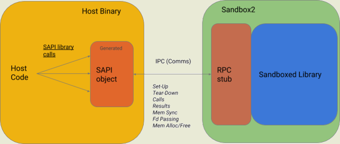 > Обращение к изолированной библиотеке осуществляется через специализированный RPC, базирующийся на протоколе ProtoBuffs