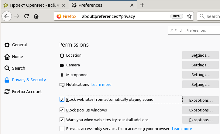 >При открытии страницы, автоматически воспроизводящей звук | | |