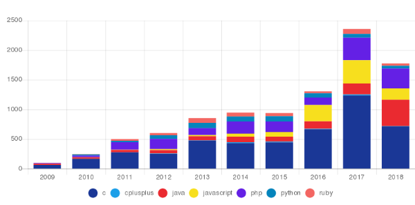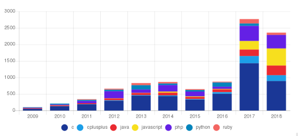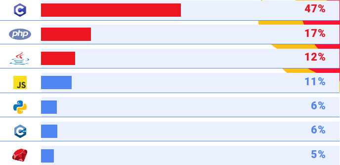>Данная статистика сильно коррелирует с популярностью того или иного языка и объёмом наработанной кодовой базы
