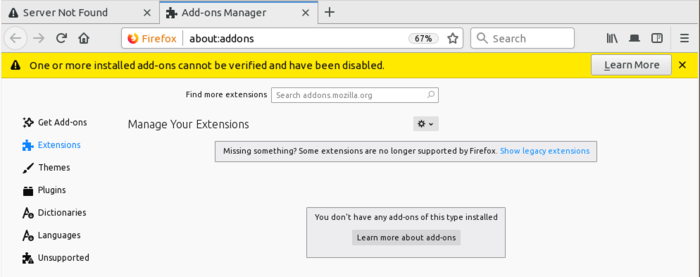 Это еще не все - оказалось что протухание сертификата привело еще и к "грохингу" некоторых аддонов браузером - https://bugzilla.mozilla.org/show_bug.cgi?id=1549129