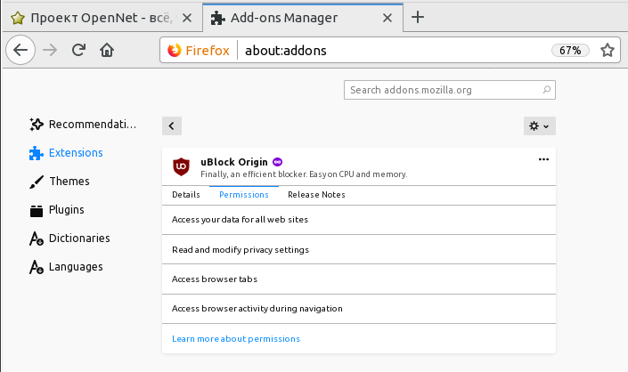 >Включён по умолчанию новый менеджер дополнений (about:addons)
